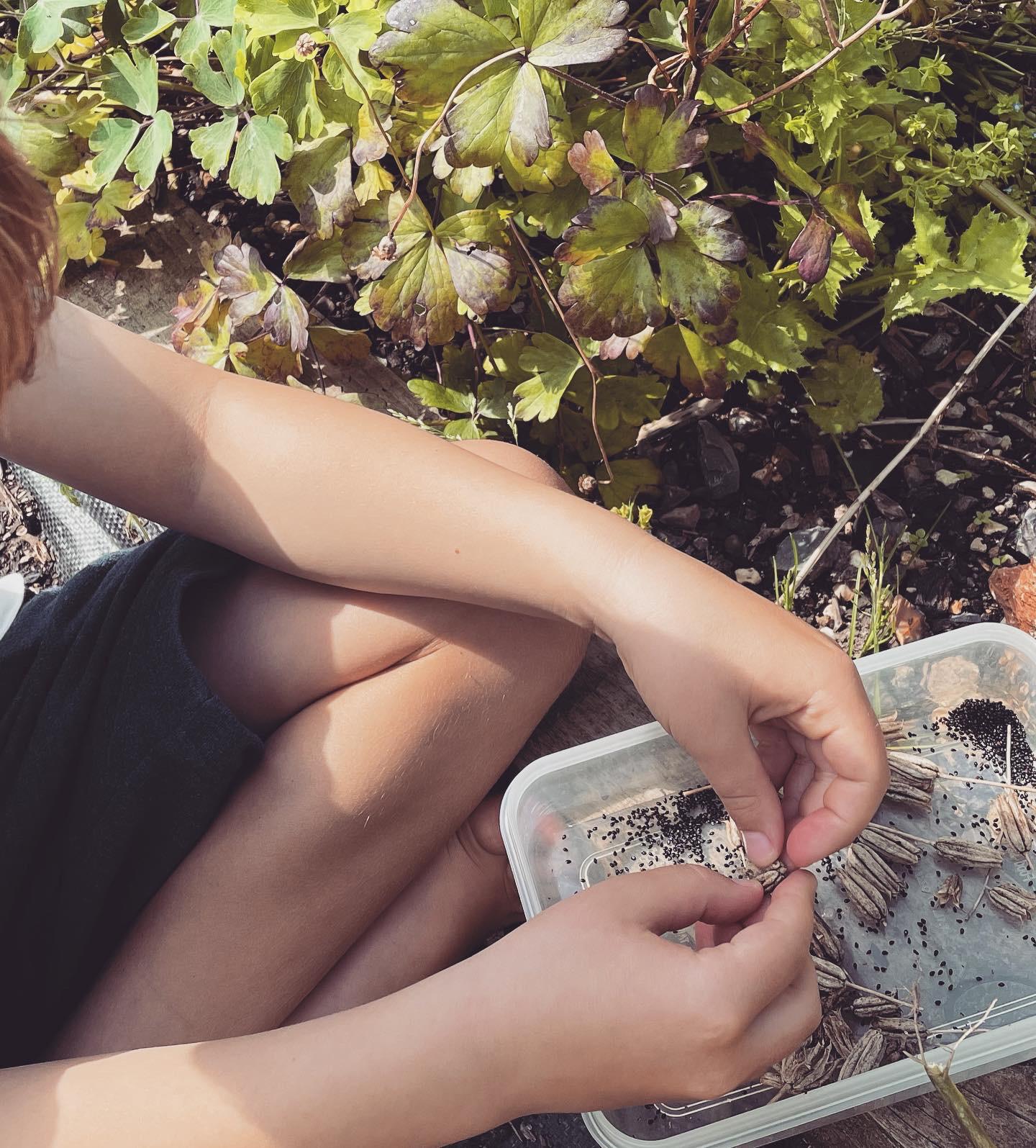 My eldest got the secateurs and got to deadhead all the poppies - try snipping them straight into a bowl otherwise tiny poppy seeds will spray everywhere!