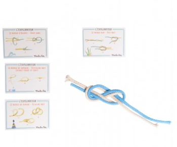 Two cords, in natural and blue, presented in an attractive box containing four cards. Printed on both sides they explain how to tie a range of different knots. The illustrated tutorials make it easy to learn to tie a figure of eight knot, reef knot... and many others!